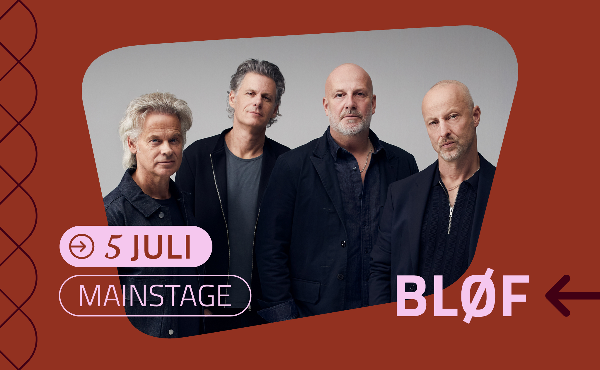 BLØF brak in 1998 door met de hit Liefs uit Londen en groeide uit tot een van de succesvolste Nederlandstalige bands. Met albums als Umoja, April en Polaroid staat BLØF bekend om melodieuze muziek, poëtische teksten en indrukwekkende liveoptredens. BLØF bestaat uit Paskal Jakobsen, Peter Slager, Bas Kennis en Corné Janssen.